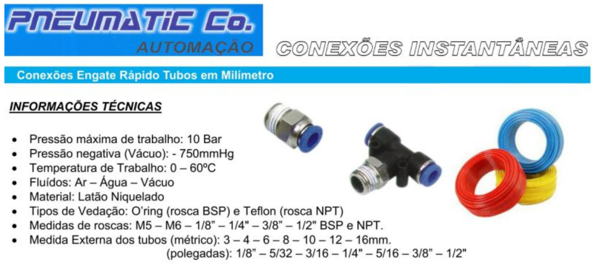 Conexões engate rápido tubos em milímetros